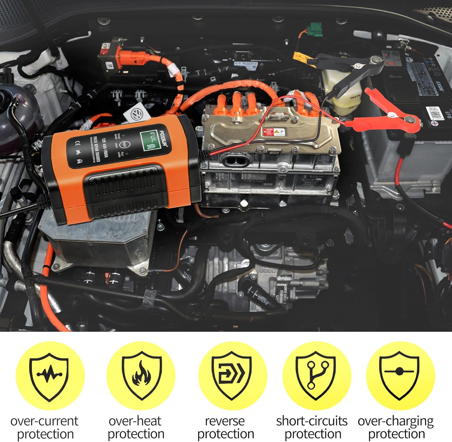 Avec ses multiples protections intégrées, ce chargeur assure votre sécurité à chaque utilisation. Il est protégé contre la surchauffe, les courts-circuits, la surcharge, la basse tension, l'inversion de polarité et la surtension. Vous pouvez l'utiliser en toute confiance, même si vous n'êtes pas un expert en mécanique. Le manuel détaillé fourni vous guide étape par étape pour une utilisation sans souci.